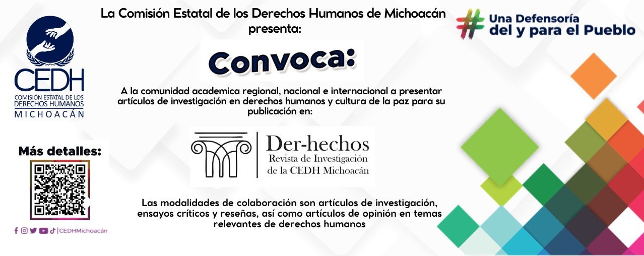 - Convocatoria para publicar artículos de investigación en derechos humanos y cultura de la paz en la Revista de Investigación Der-hechos