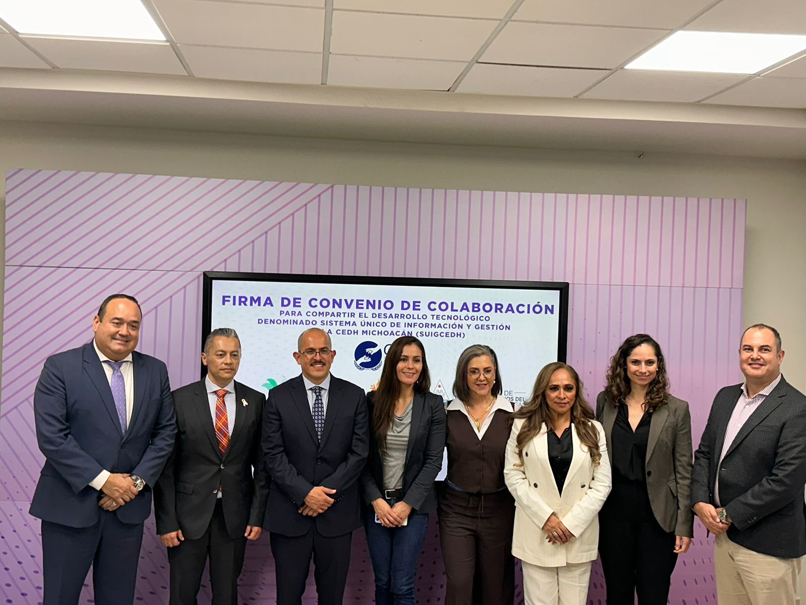 León, Guanajuato, a 28 de noviembre de 2023. Con el objetivo de compartir el desarrollo tecnológico denominado Sistema Único de Información y Gestión de la CEDH Michoacán (SUIGCEDH), este organismo autónomo firmó convenios con sus homólogos de Zacatecas, Hidalgo y Baja California.