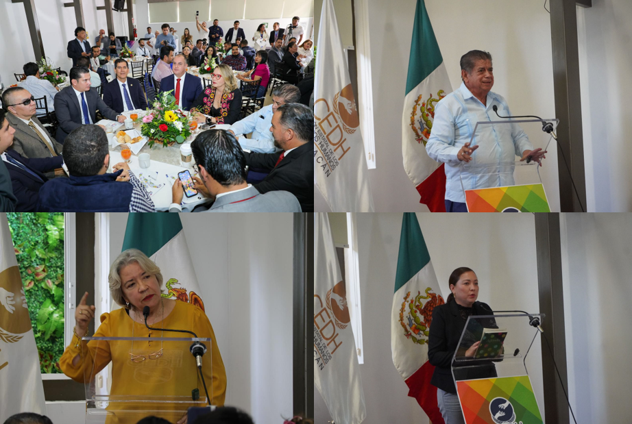A nombre estrictamente personal, y en calidad de ciudadano, intervino el maestro Elio Núñez, catedrático jubilado, quien aplaudió los avances que ha tenido el organismo durante la presidencia de Tinoco Álvarez, mismo que, dijo, ha fortalecido la defensa de los derechos y de la dignidad del ser humano, lo que sin duda contribuye a la consolidación de un estado de paz.