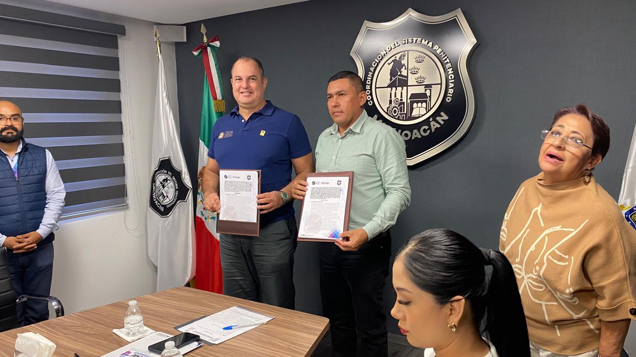 Morelia, Michoacán, 04 de octubre de 2024.- Al firmar un convenio de colaboración con la Coordinación del Sistema Penitenciario del Estado de Michoacán de Ocampo (CSPEMO), el presidente de la Comisión Estatal de los Derechos Humanos, Marco Antonio Tinoco Álvarez, dijo que ambas instituciones trabajarán en beneficio no sólo de las personas que se encuentran privadas de su libertad, sino también de sus familias.