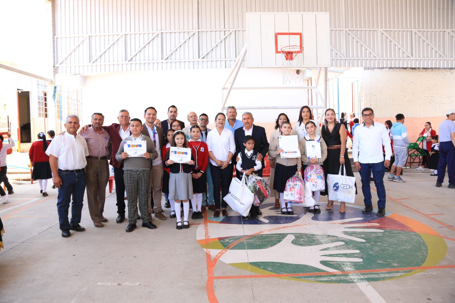 En dicha ceremonia participó la Presidenta Municipal, Jeovana Alcantar, la menor Regina Ramírez, integrante del Sistema Integral de Protección para las niñas, niños y adolescentes, constituído en el municipio, así como personas supervisoras, directoras y docentes de la Secretaría de Educación Estatal.