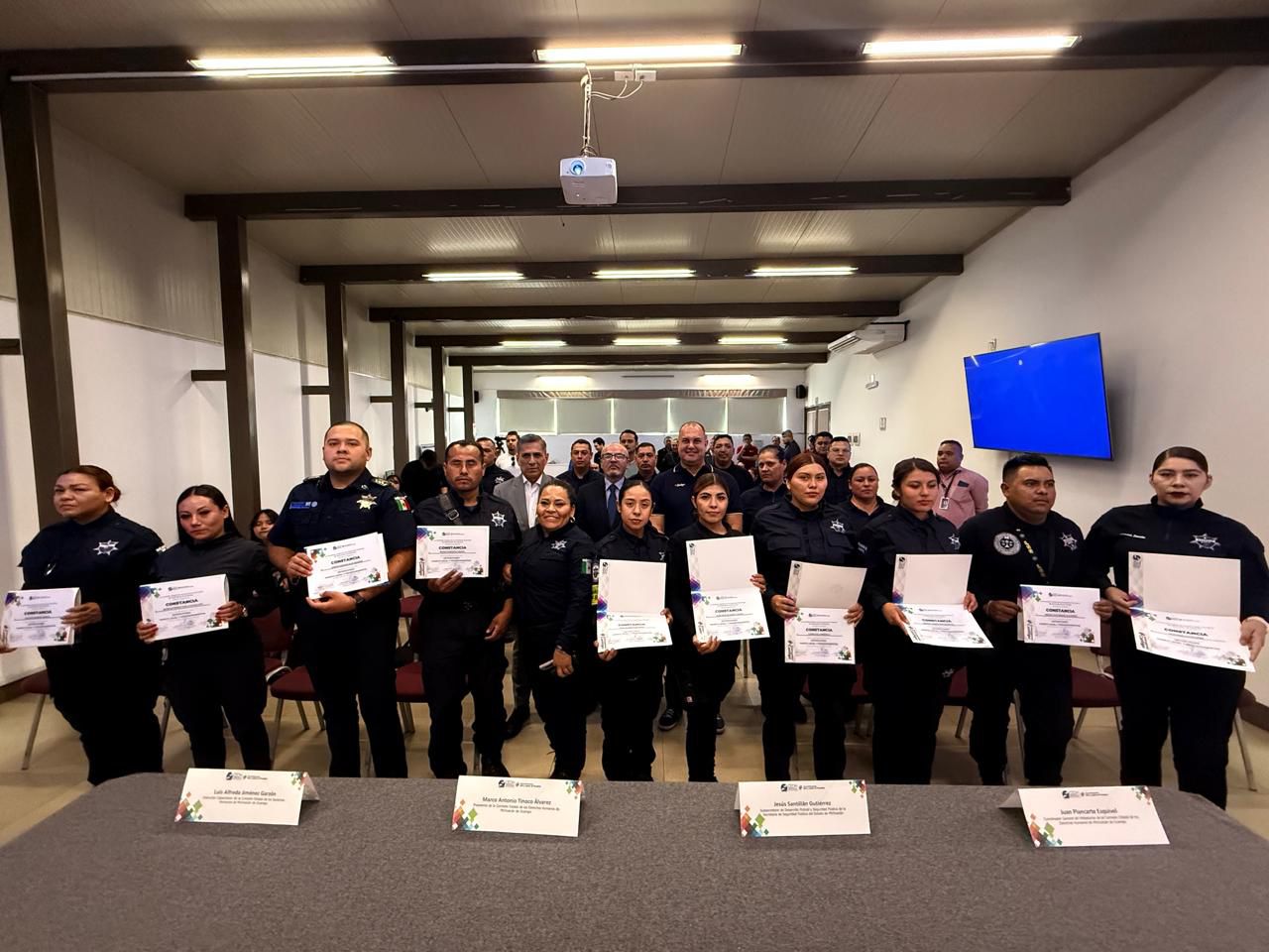 En su turno, el instructor capacitador a cuyo cargo estuvo la impartición del curso, Luis Alfredo Jiménez Garzón, se refirió al orgullo que deben sentir los cuerpos de seguridad al representar a una institución tan noble; les reconoció la valentía de dedicarse a esta profesión y les invitó a ejercerla con decoro, con gallardía, con conocimientos y con profesionalismo.