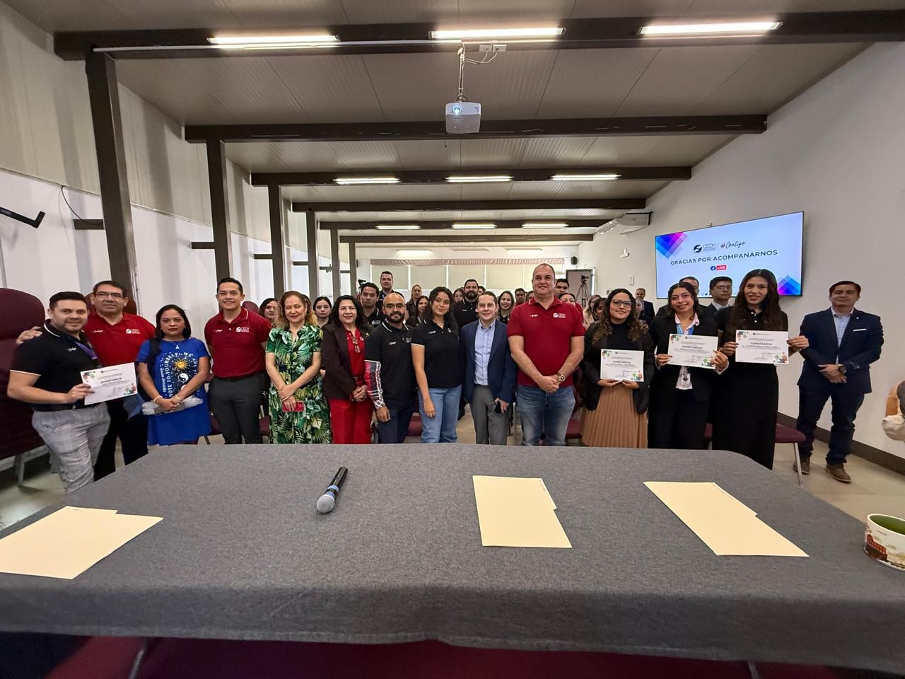 En la ceremonia de entrega de constancias, el ombudsperson Marco Antonio Tinoco Álvarez, dijo que el capacitar al personal de la defensoría en el tema de LSM era un gran pendiente que se tenía con la comunidad sorda del Estado.