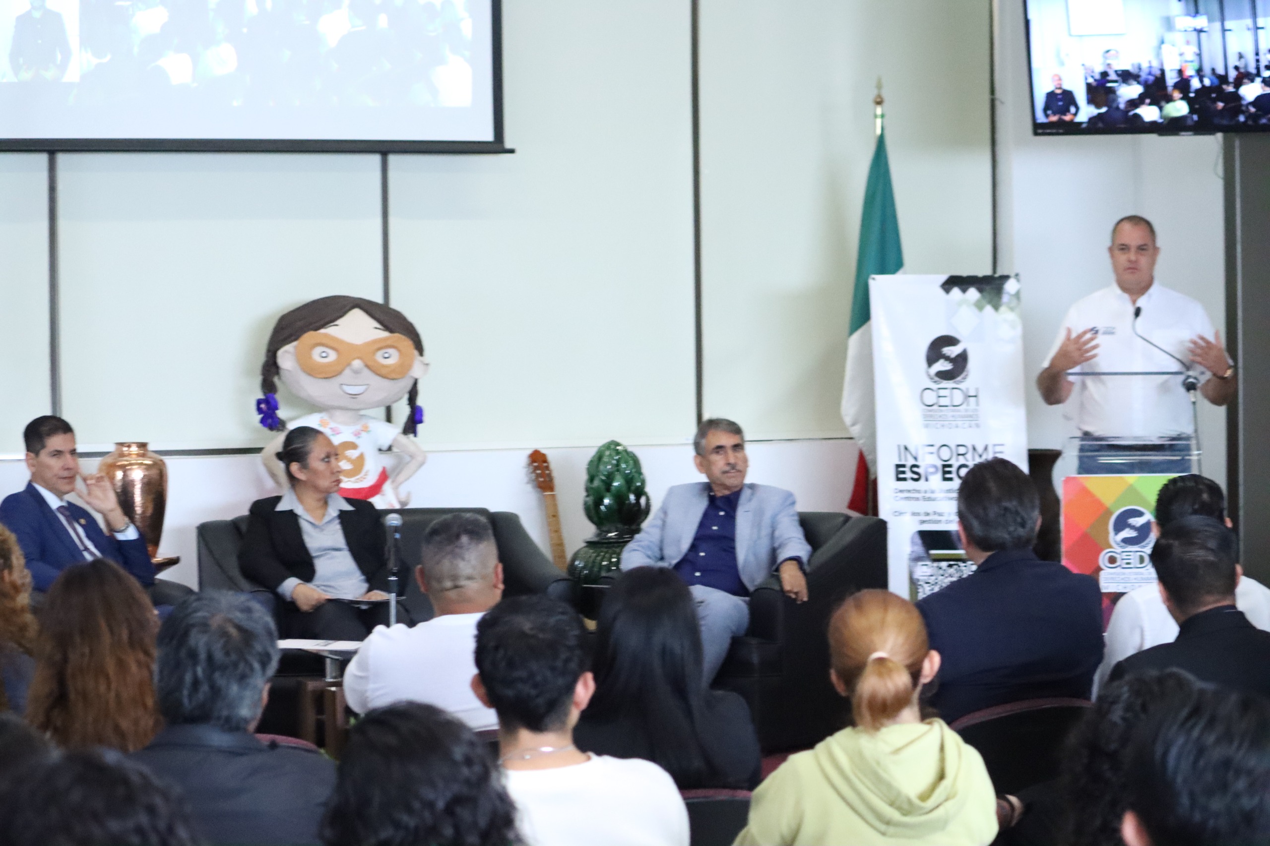 Por lo que al informe se refiere, éste se elaboró a partir de la respuesta que 16 instituciones educativas de nivel medio y superior brindaron a la CEDH, de las cuales el 83% declararon sí contar con programas o mecanismos para la integración de la comunidad educativa.