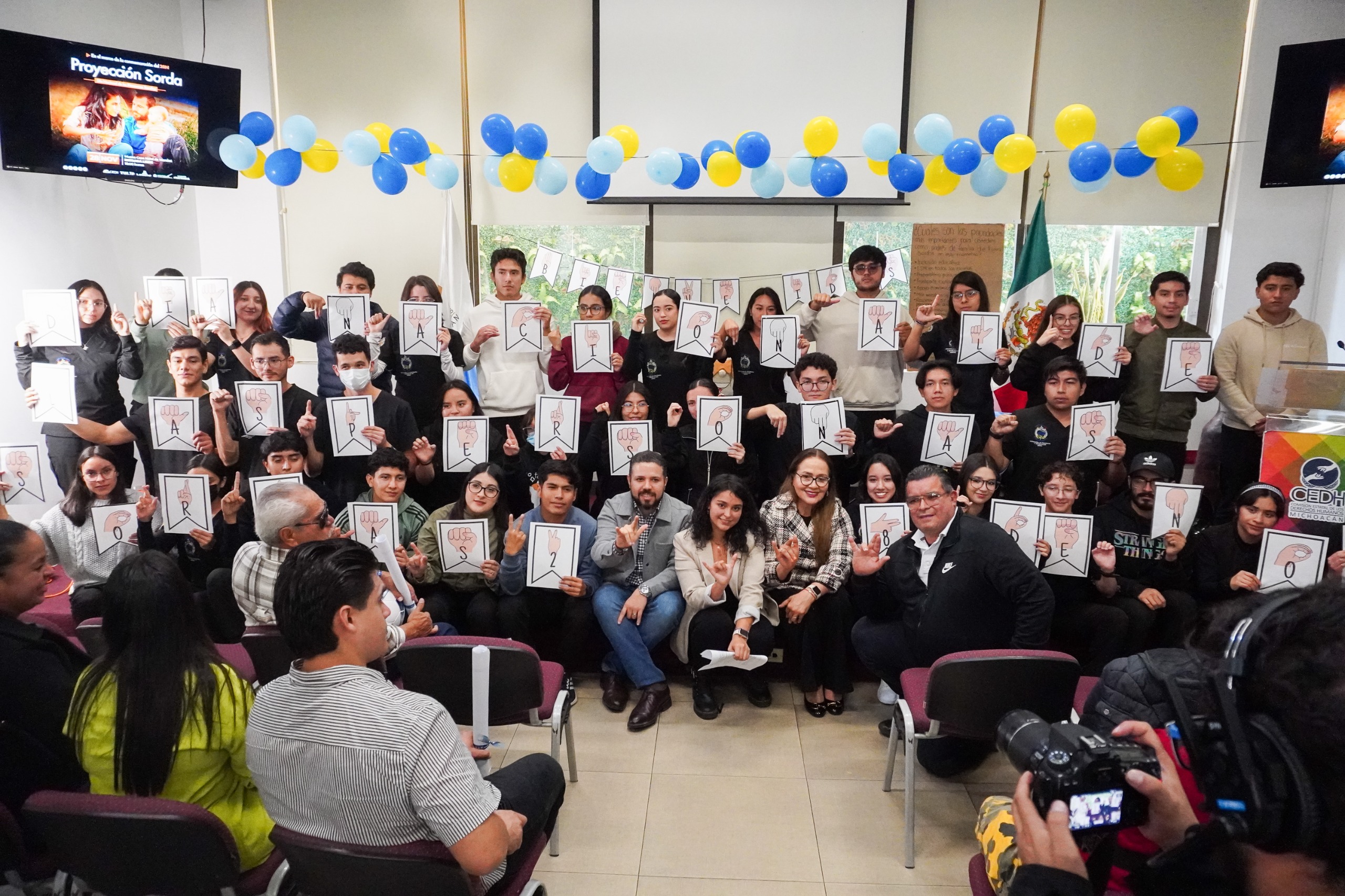 Morelia, Michoacán, 27 de noviembre de 2025.- En la víspera de la conmemoración del Día Nacional de las Personas Sordas, la Comisión Estatal de los Derechos Humanos de Michoacán, realizó un emotivo acto como reconocimiento a este sector de la población en la entidad.