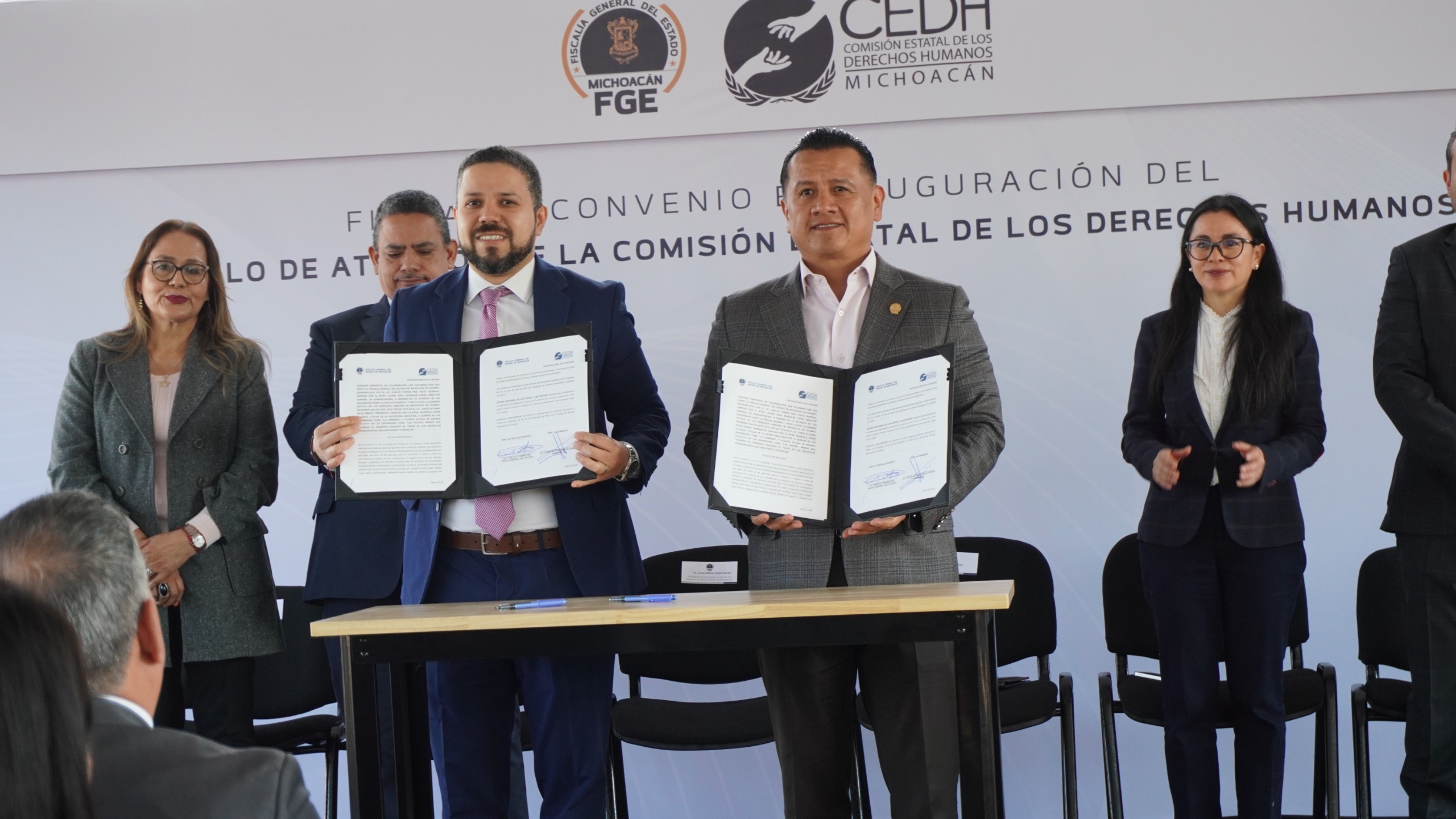 La firma del convenio de colaboración entre la Comisión Estatal de los Derechos Humanos y la Fiscalía General del Estado, se enmarcó en la Conmemoración del Día Internacional de los Derechos Humanos, como una acción perceptible de cercanía con las y los michoacanos.