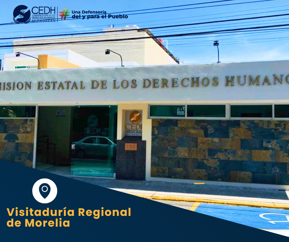 ![]() | Área de Competencia La Visitaduría Regional de Morelia tiene competencia para conocer de las quejas por actos u omisiones que se hayan cometido o se estén cometiendo en los municipios de Acuitzio, Álvaro Obregón, Carácuaro, Coeneo, Copándaro, Cuitzeo, Charo, Chucándiro, Erongarícuaro, Huandacareo, Huaniqueo, Huiramba, Indaparapeo, Laguinillas, Madero, Morelia, Morelos, Nocupétaro, Pátzcuaro, Puruándiro, Queréndaro, Quiroga, Santa Ana Maya, Tacámbaro, Tarímbaro, Tzintzuntzan, Tzitzio y Zinapécuaro. |